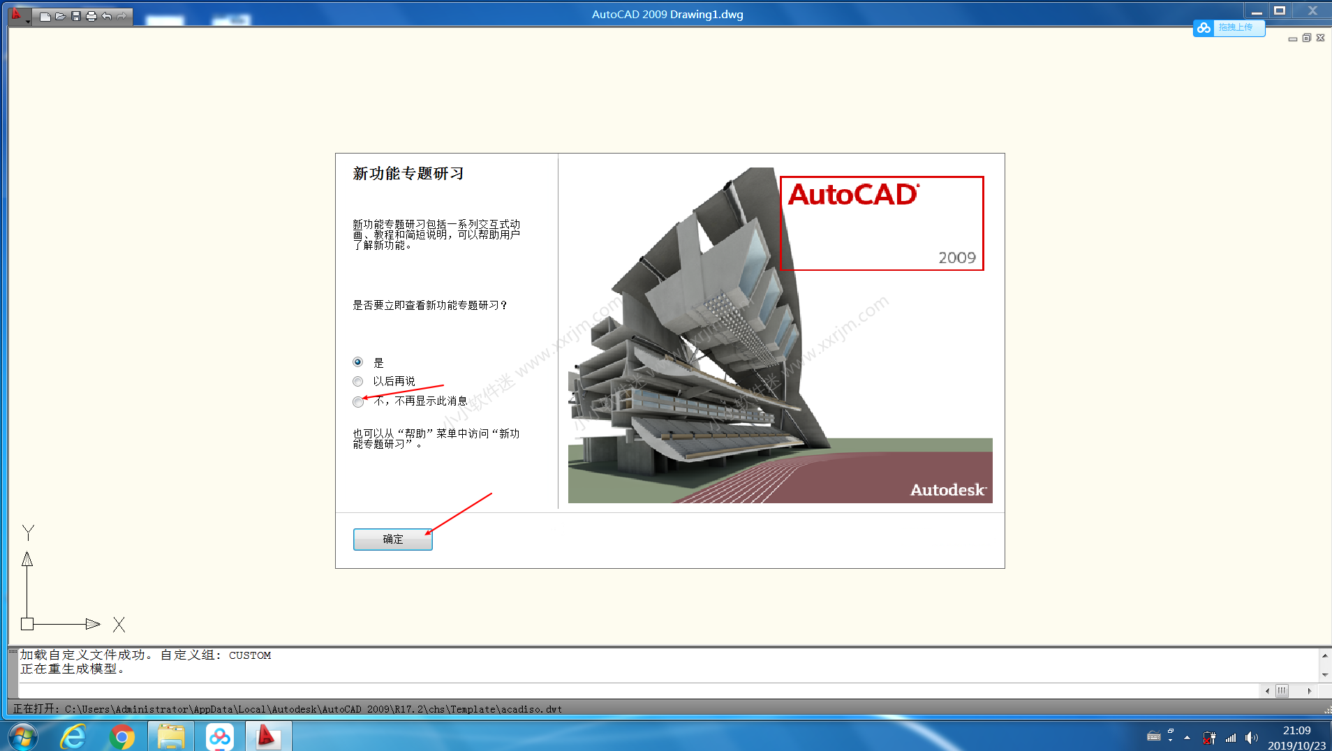 17.选择不再显示此消息,点击确定,cad2009安装结束。