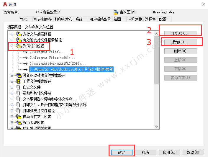 6.如果你的cad版本是2014-2018,需要设置信任位置,输入op命令设置,2013以下版本忽略此步;