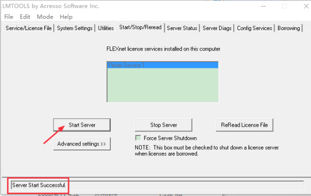 16.在Start/Stop/Reread中点击Start Server,在下方显示Server Start Successful,关闭窗口