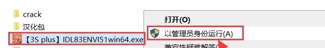 3.鼠标右击【【3S plus】IDL83ENVI51win64.exe】选择【以管理员身份运行】。