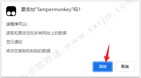4.弹出下图提示,点击添加即可。tampermonkey就安装好了。