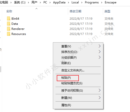 3.将Path粘贴到C:\Users\%username%\AppData\Local\Programs\Enscape文件夹中后,打开,输入密码cgpersia-zmco