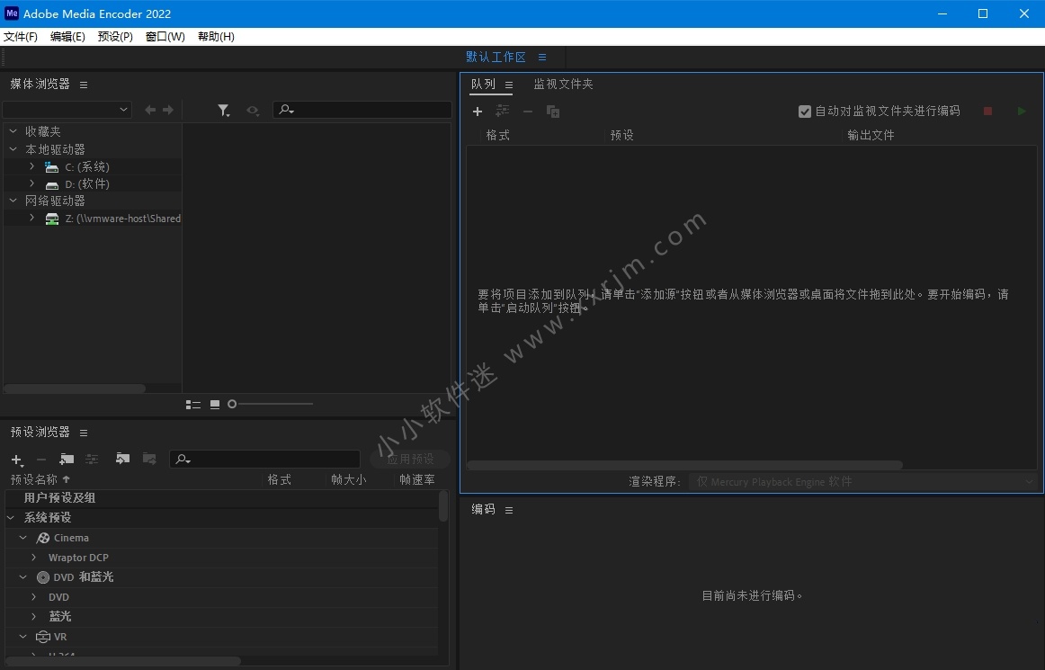Adobe Media Encoder 2022破解版(简称Me)是一款音视频格式转码软件及视频编码软件.Adobe Media Encoder中文破解版视频转码软件几乎支持任何格式,使用预设设置Watch Folders 和 Destination Publishing自动执行工作流程.使用Time Tuner无痕调整持续时间,应用LUT和Loudness校正而无需重新打开项目.