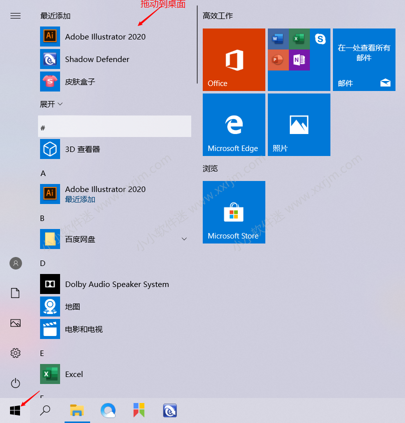 8.点开开始菜单,将AI CC2017快捷方式拖到到桌面空白处。