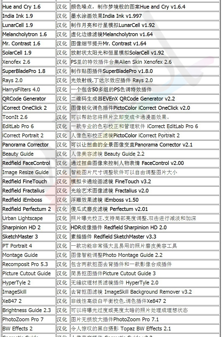 PS扩展面板,包含了很多中文版实用面板。如:DR3/DR4 Raya Pro 3.Coolorus.Easy.GuideGuide.StarsTail.TK Actions V6.SMP Pro.InstaMask.表格绘制.长投影 等…..是一款帮助摄影师和修图师加快PS图象处理的软件扩展面板,提高工作流程和质量。