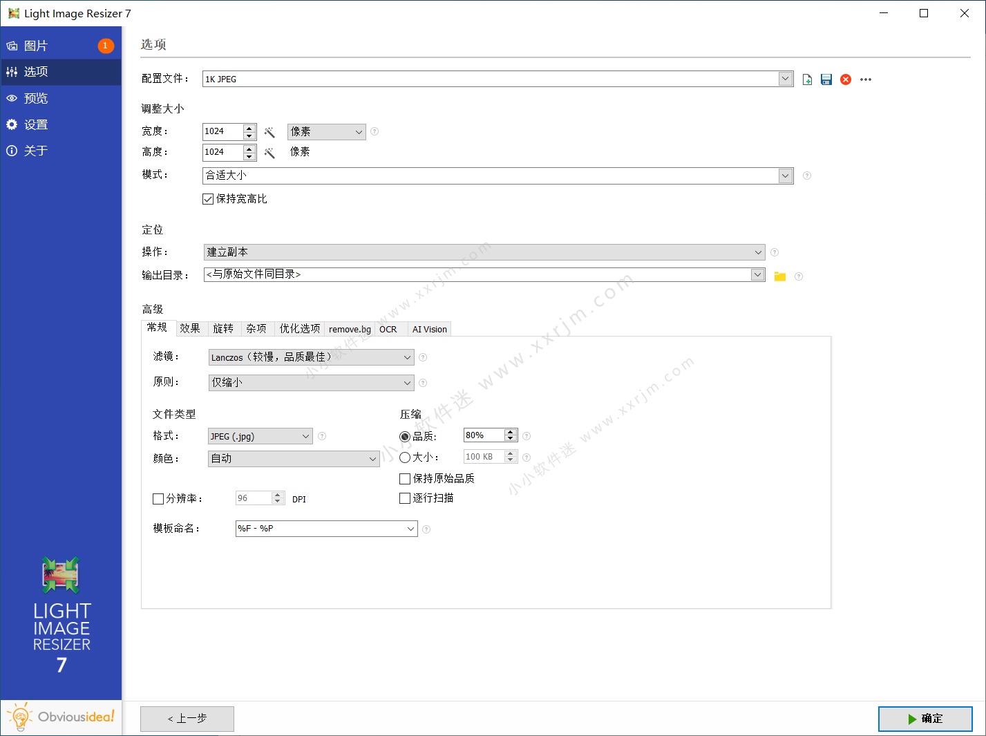 Light Image Resizer中文版是一款图像批量调整工具的图片压缩工具.批量调整图片大小,批量添加水印,批量转换格式,调整大小,缩放裁剪,图片格式转换,重命名,排序;添加效果,旋转,自定义元数据,优化压缩,移除背景.