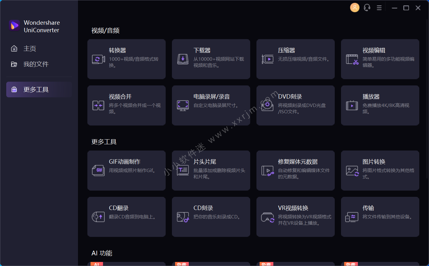 Wondershare UniConverter中文破解版(万兴优转)是一款国产全能视频格式转换软件.万兴格式转换器最新版具有音视频格式转换,合并视频,视频压缩,视频编辑,视频录制,视频下载,视频元数据修复,VR视频转换,字幕编辑器,GIF制作,DVD刻录等一站式视频工具箱功能.万兴转换器以超快的转换速度及强大的功能在国外名声大噪,其转换速度号称是市面同类产品的30倍,支持158种视频格式无损转换,批量转换高清视频不丢失关键帧.