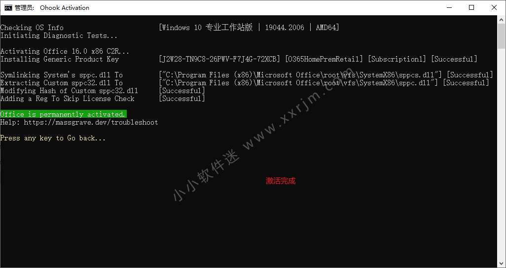另外,使用cmd命令查询Office激活状态依然显示未激活,这个无需理会,实际已经PJ完成。