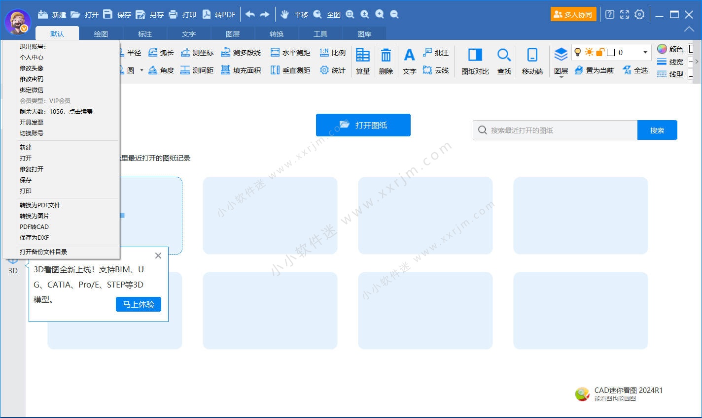 平移、缩放、全屏、打印、测量、算量、批注、图层编辑器、查看布局、文字查找替换、编辑模式随心所欲;