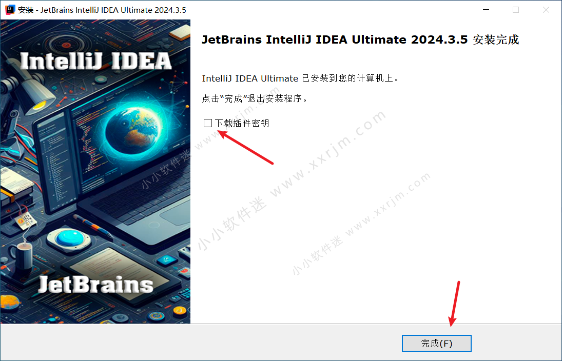 2.此处注意取消勾选下载插件密钥,点击完成。