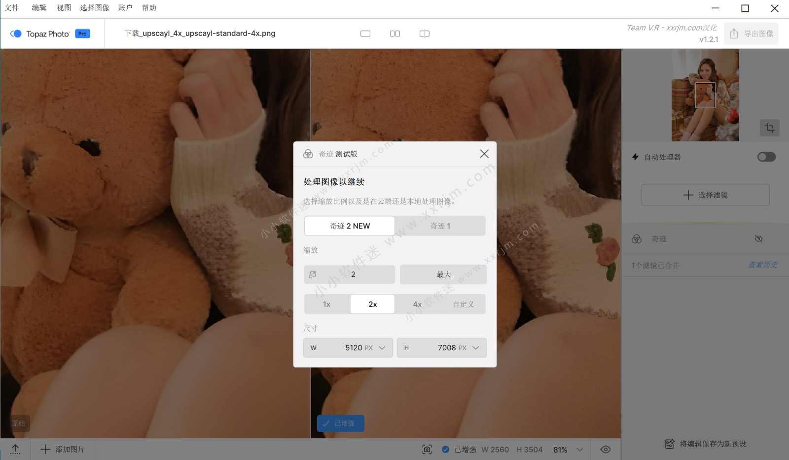 Topaz Photo Pro是功能全面的AI创意工作室版,主打 “创作型”模型,例如能智能生成细节的Standard MAX超分模型和平衡画面效果的Wonder模型,侧重于利用AI进行图像增强、放大和无损创作 。