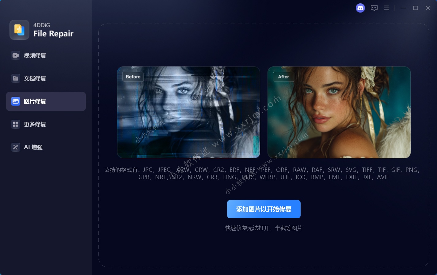 4DDiG File RepAir 是一款强大的文件修复软件,专门解决各种文件损坏问题。无论是照片和视频损坏,还是文档出现乱码、视频无法播放,或者老旧黑白照片需要重现生动色彩,这款软件都能通过先进的 AI 修复技术帮助您找回失去的资料。