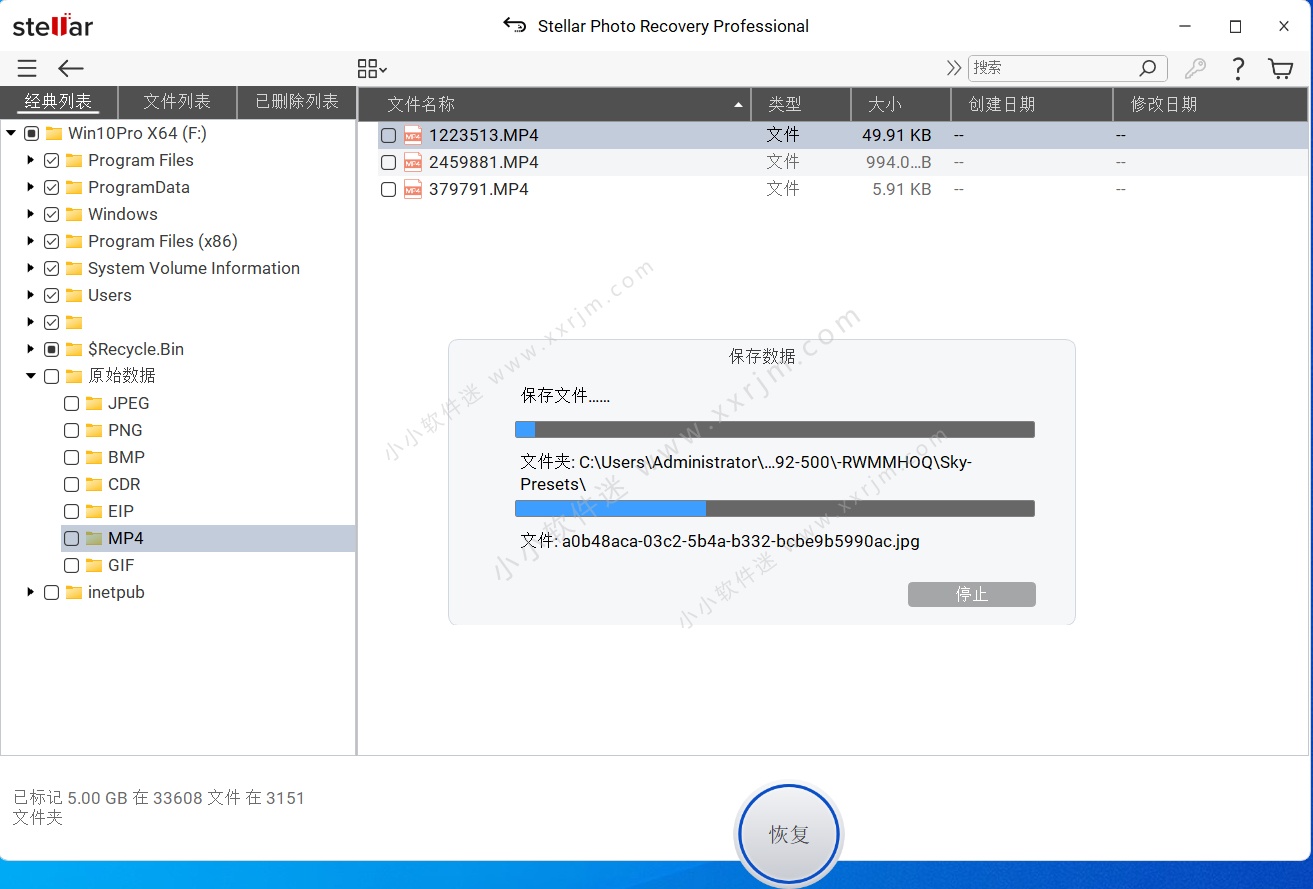 预览并恢复任何丢失/删除/无法访问的视频文件,而不会影响其视觉质量。软件支持的视频文件格式包括MP4,3GP,AVI,MPEG,Matroska视频文件(MKV),AVCHD视频文件(MTS),Divx编码电影文件(DIVX),MOI视频文件,视频对象文件(VOB) ,OGG媒体播放器(OGM),3G2,ASX