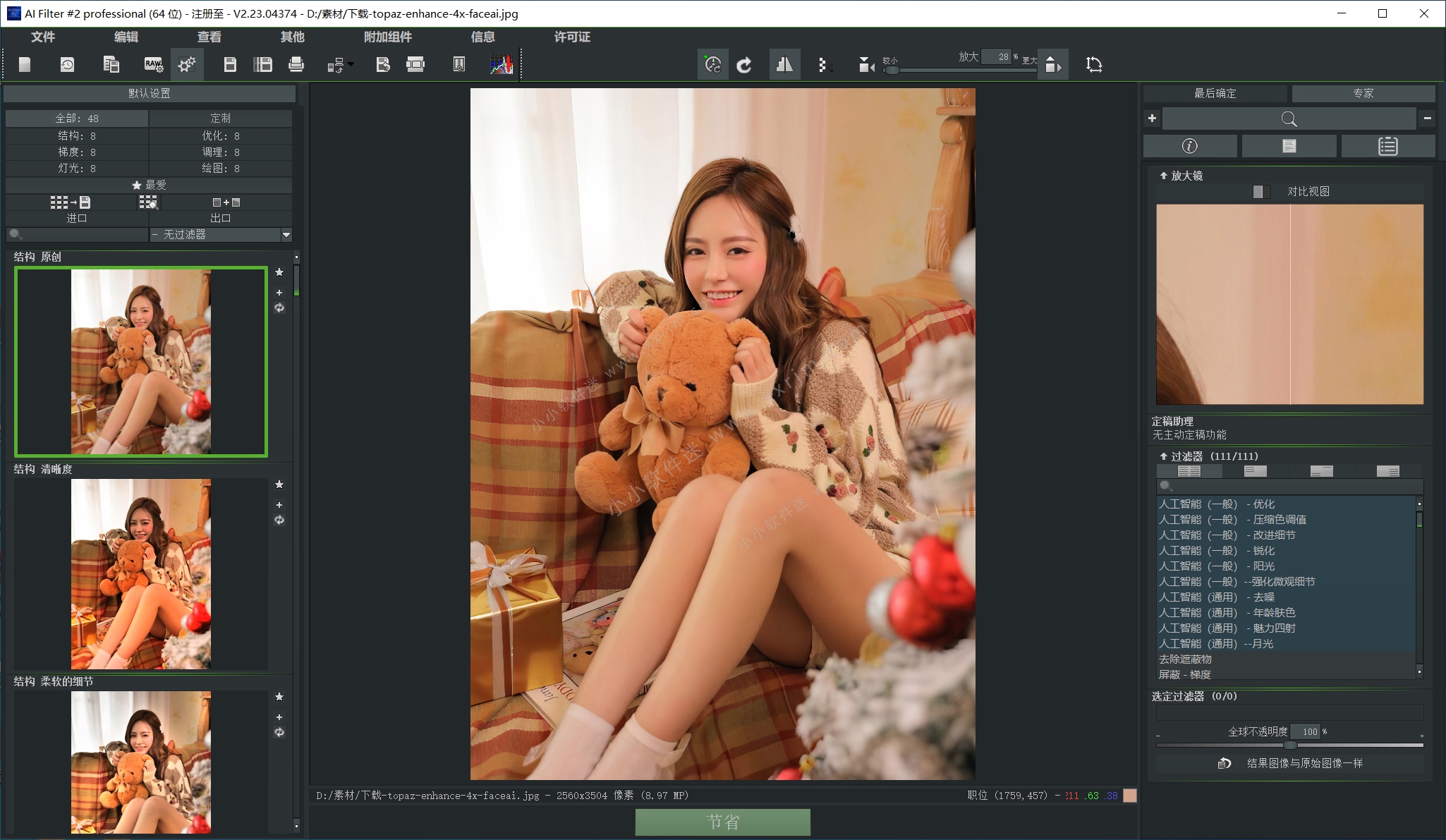 AI Filter #2 专业版包括一个现成的AI滤镜数据库,用户可以使用自定义的AI滤镜进行扩展。然后,可以将所有AI数据库中的滤镜直接应用于邀请的图像。还可以导入和导出AI滤镜,这使得与其他用户之间的高效交换成为可能。