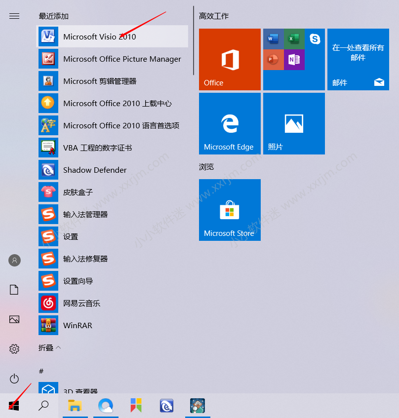 6.安装完成后,点开开始菜单,拖动visio2010快捷方式到桌面。
