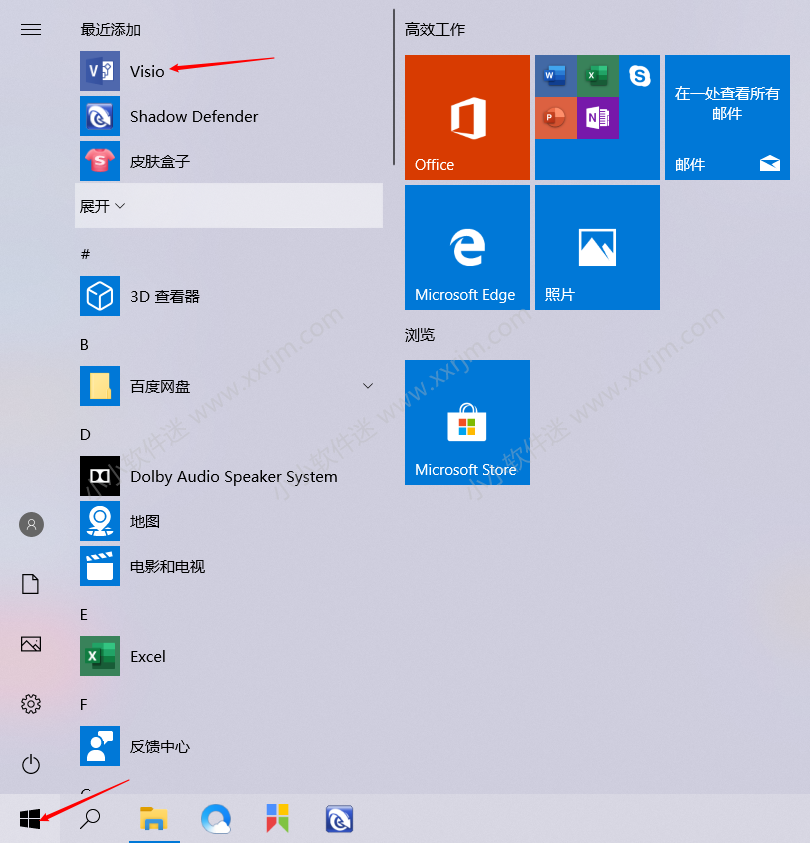 5.点开开始菜单,将visio快捷方式拖动到桌面。
