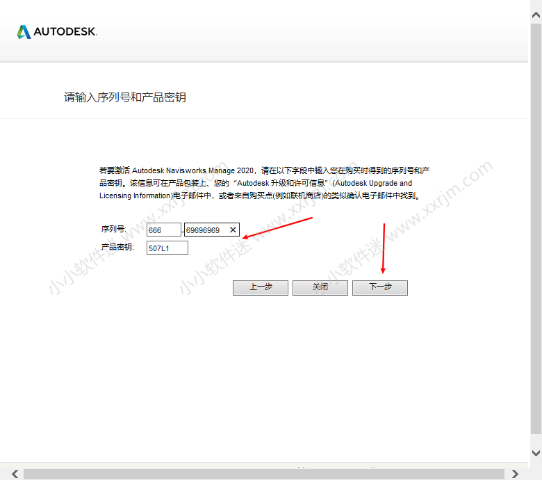 18.填写序列号666-69696969.产品密匙:507L1.点击下一步.