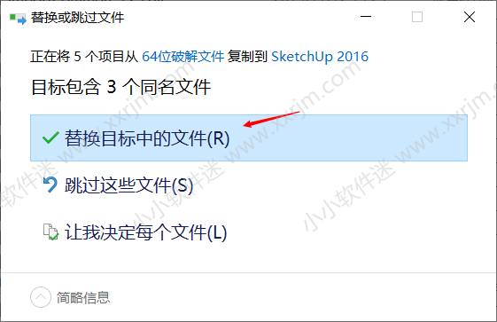 10。系统提示是否替换目标中的文件,点击替换目标中的文件。