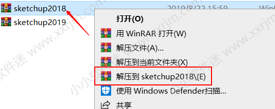 1.将下载好的Sketchup2018压缩包右键解压出来。