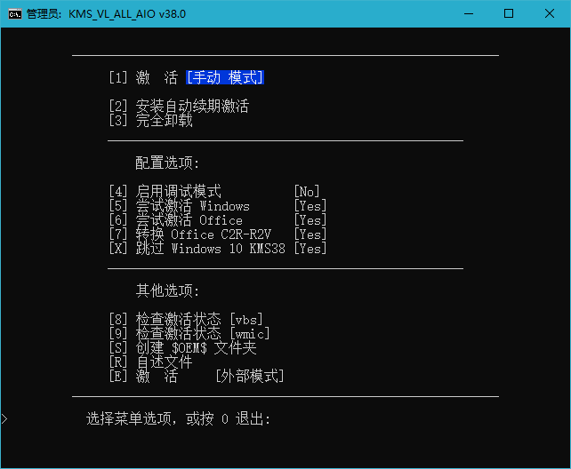 智能激活脚本KMS_VL_ALL_AIO v38.0 英文版 / 中文版